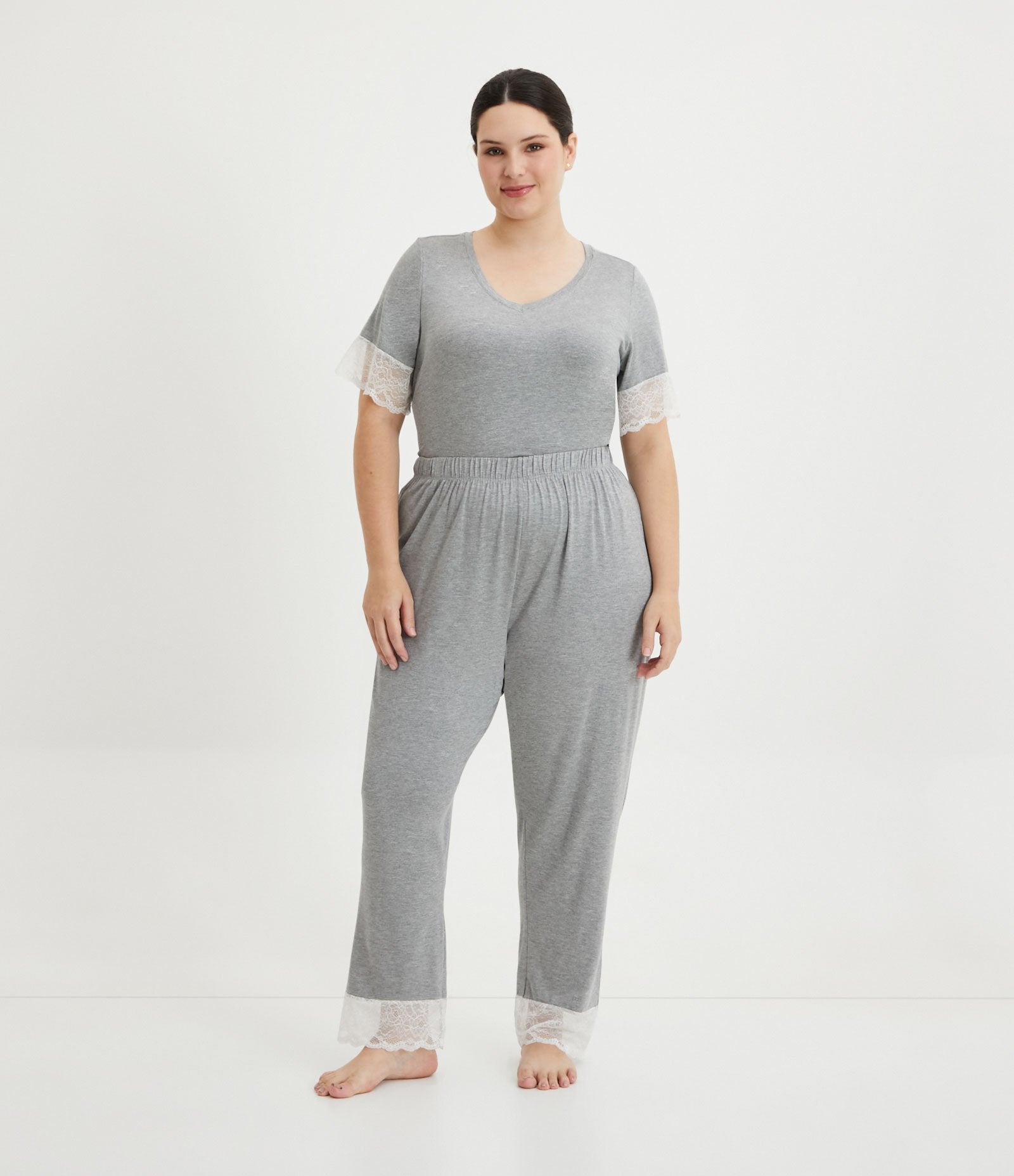 Pantaloni del pigiama Viscolycra con dettaglio in pizzo, taglie forti e taglie forti, grigio