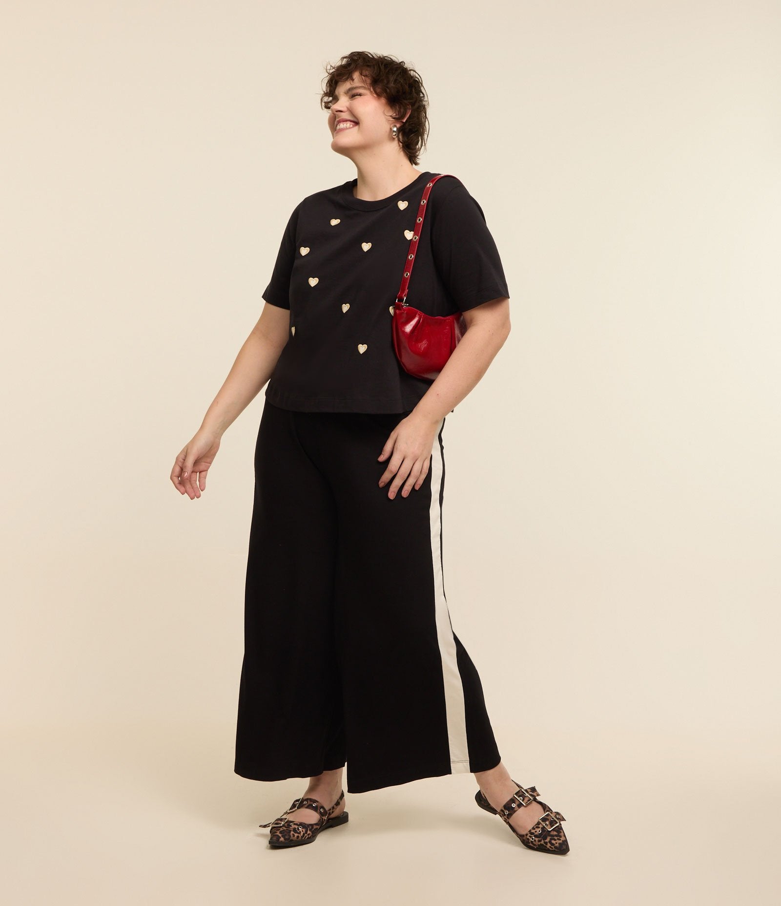 Pantaloni Pantacourt in viscosa a righe, taglie forti e taglie forti, nero