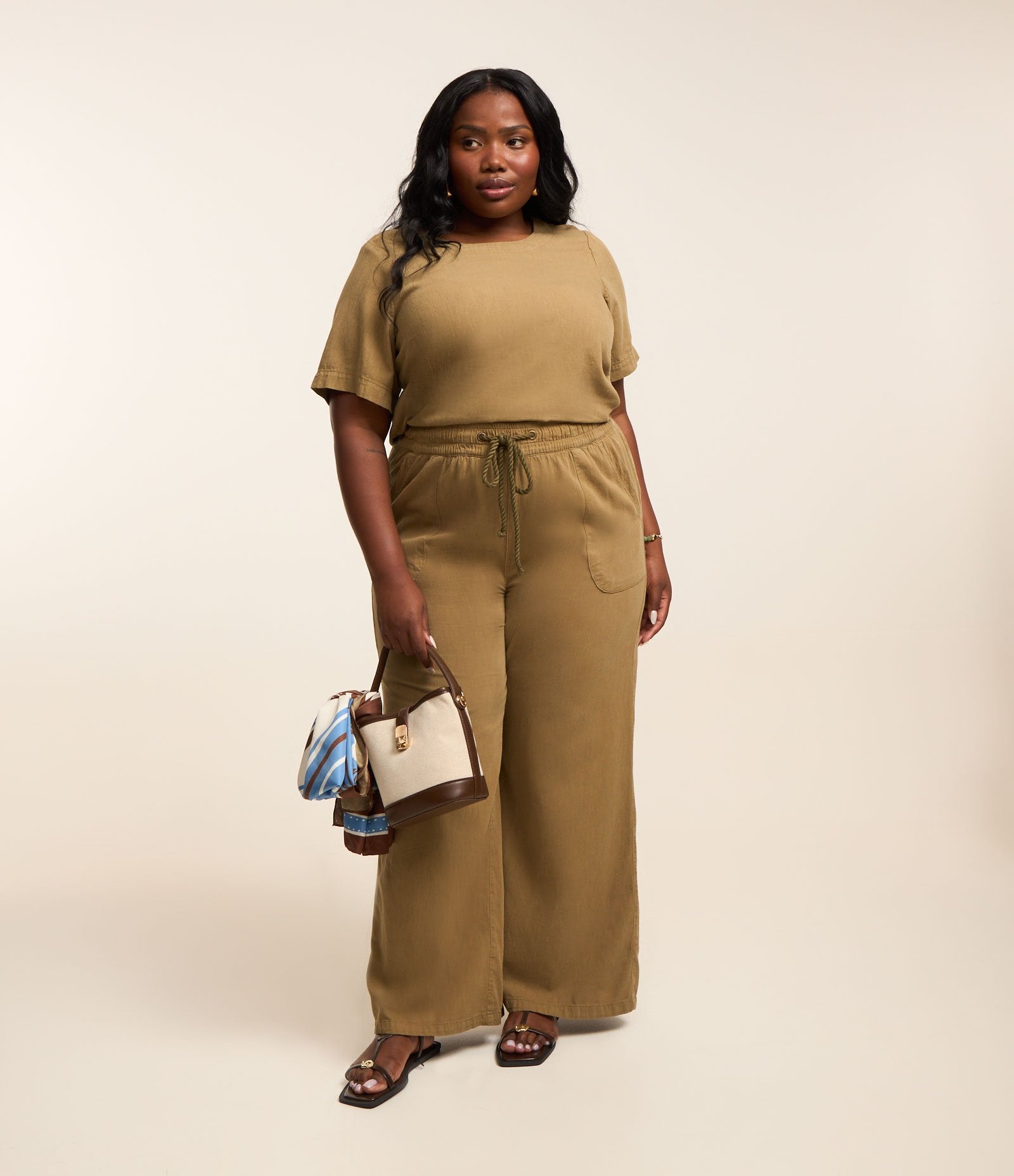 La Calca Pantalona in Twill leggero con dettaglio cravatta - Curve & Plus Size in marrone di Ashua Curve è realizzata per celebrare le tue curve con stile e sicurezza. Ideale per qualsiasi occasione, questo capo combina perfettamente comfort ed eleganza in un design lusinghiero.