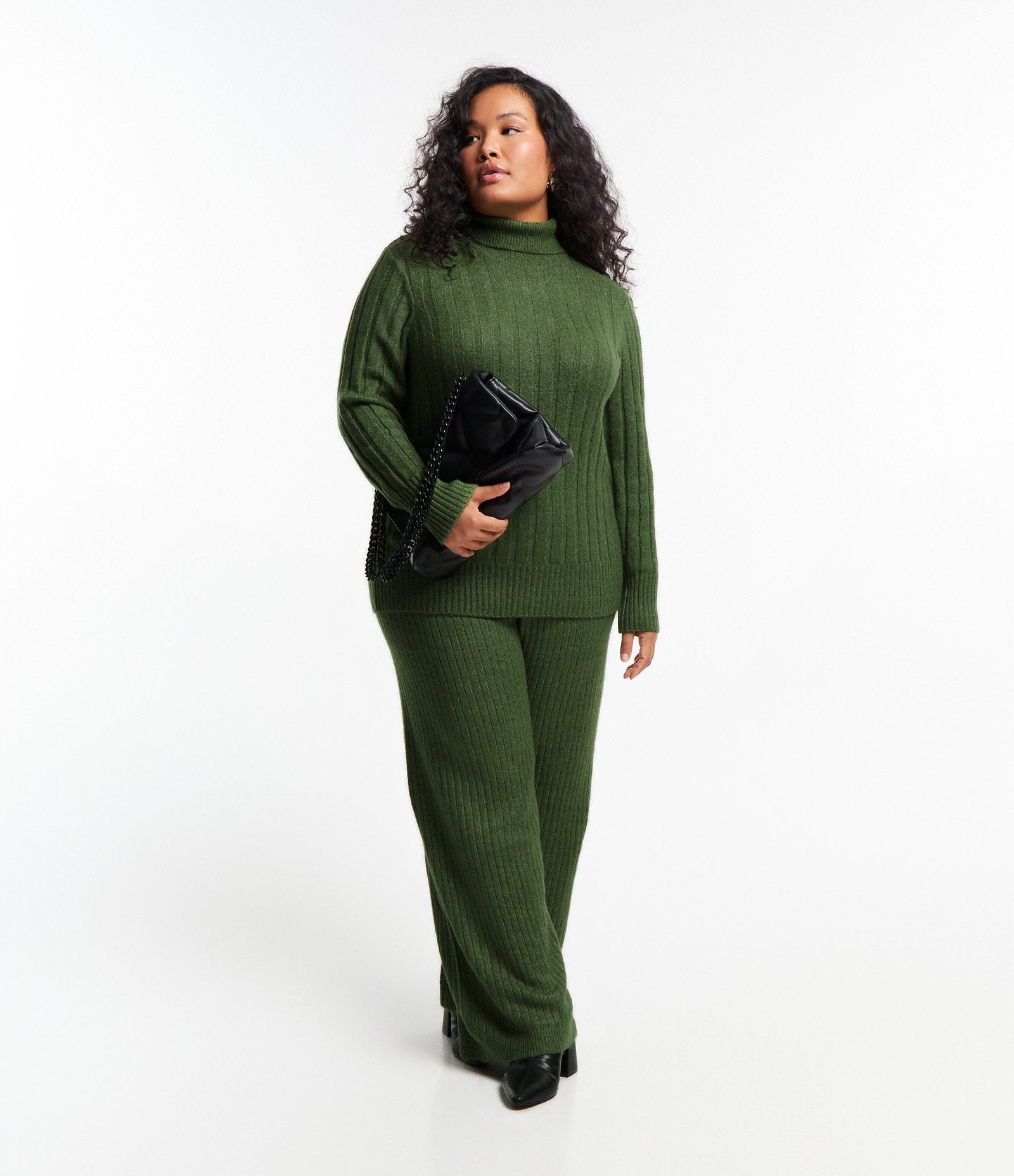 Pantaloni a zampa larga in maglia strutturata verde scuro - Curve e taglie forti