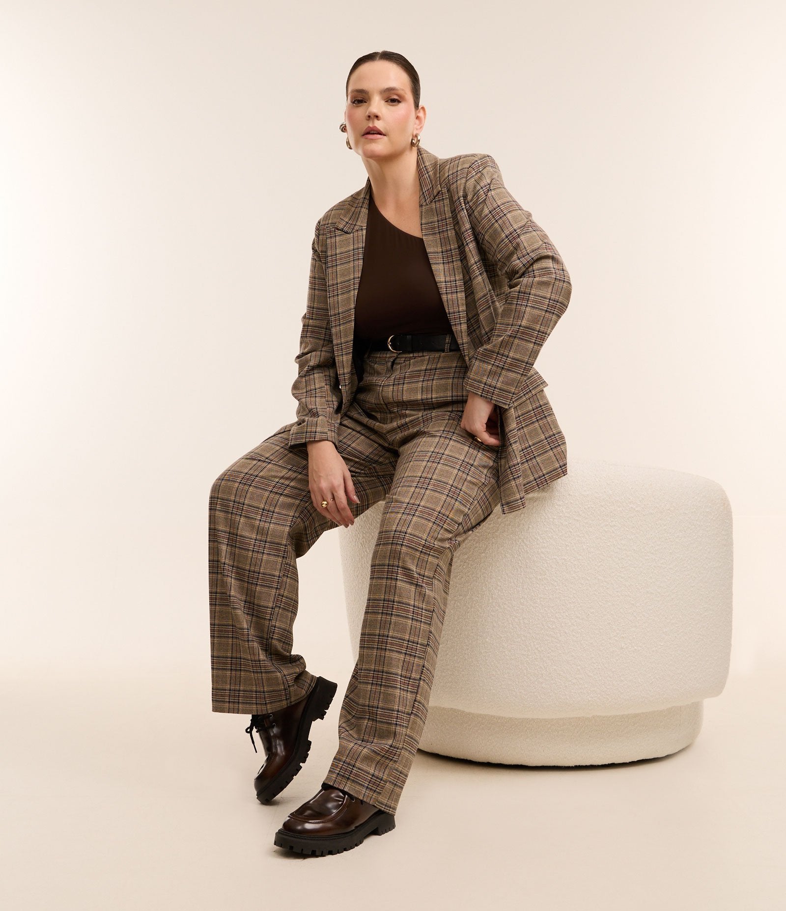I pantaloni Ashua Curve Plaid Tailored Straight-Leg con cintura in Curve & Plus Size, Marrone/Grigio, sono realizzati per celebrare le curve con stile e sicurezza. Ideale per ogni occasione, questo capo combina perfettamente comfort ed eleganza in un design lusinghiero.
