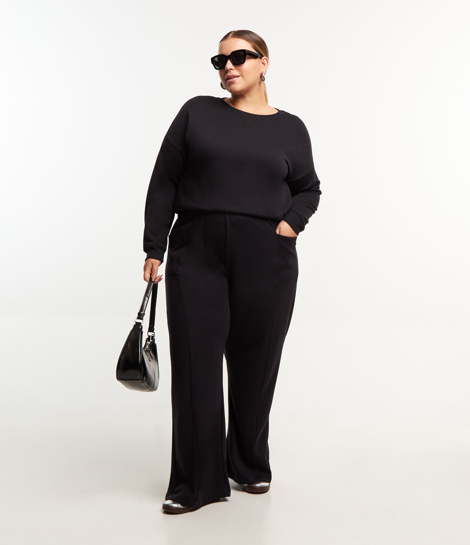 Pantaloni in felpa con tasche dal taglio dritto - Curve e taglie forti - Nero