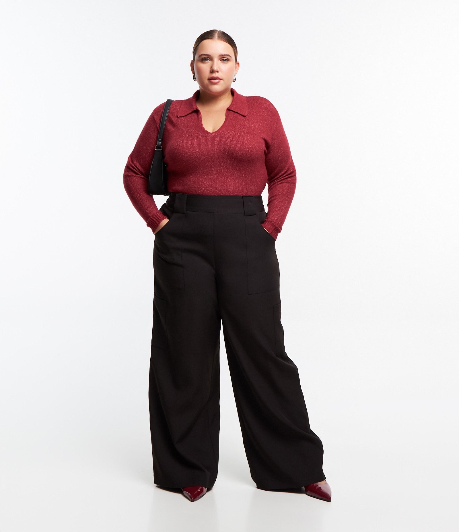 Pantaloni in crêpe a gamba larga con tasche cargo, Curve e taglie forti, nero
