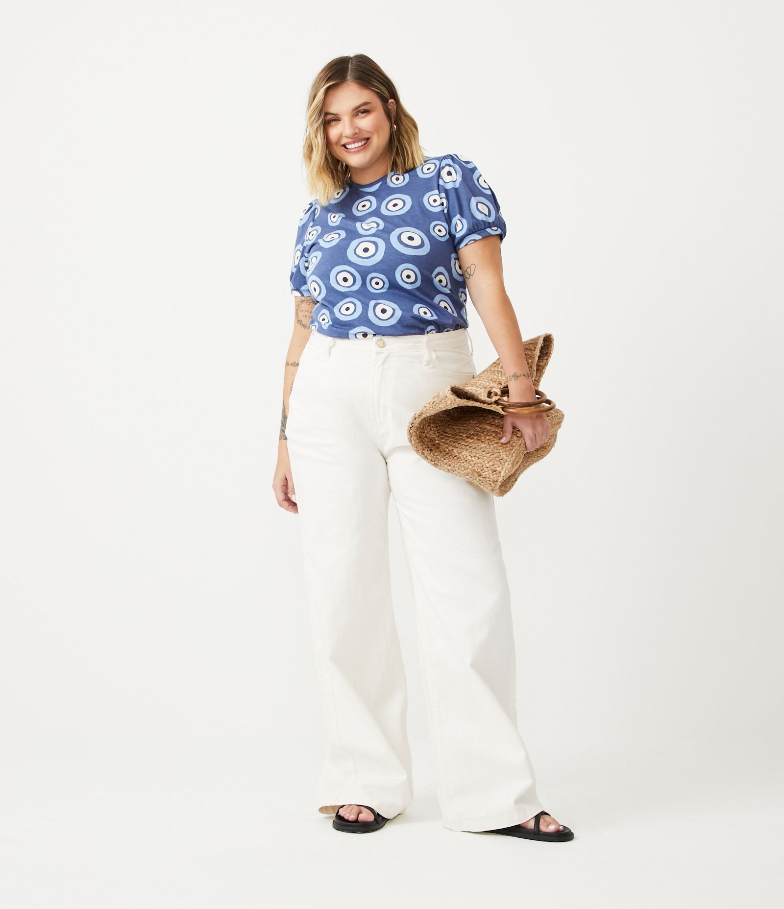 Jeans bianchi a gamba larga con dettaglio unico dei bottoni - Curve e taglie forti
