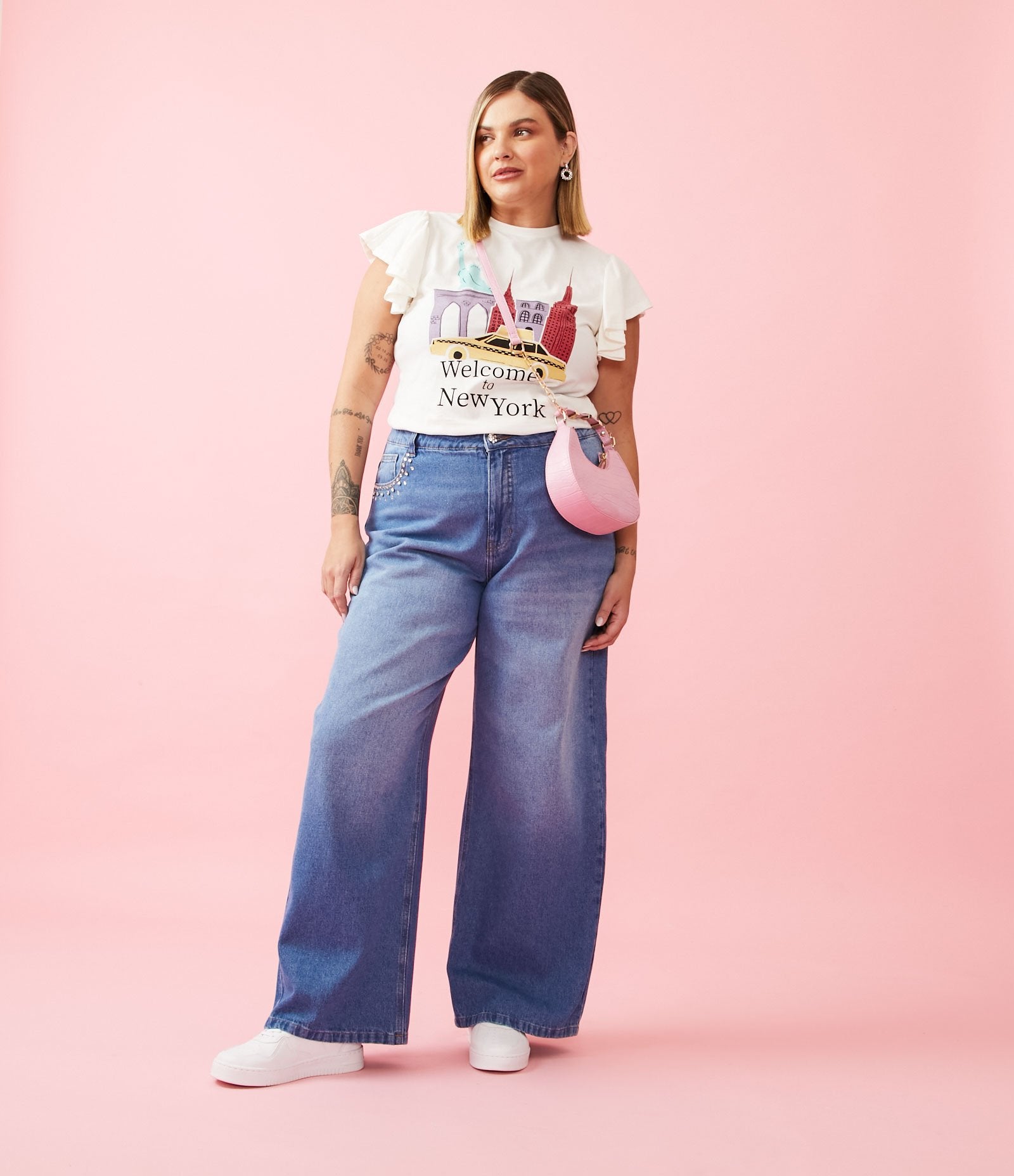I jeans Calca a gamba larga con bottone gioiello e dettaglio scintillante in Curve & Plus Size Blue di Ashua Curve sono realizzati per celebrare le tue curve con stile e sicurezza. Perfetto per ogni occasione, questo capo combina perfettamente comfort ed eleganza in un design lusinghiero.