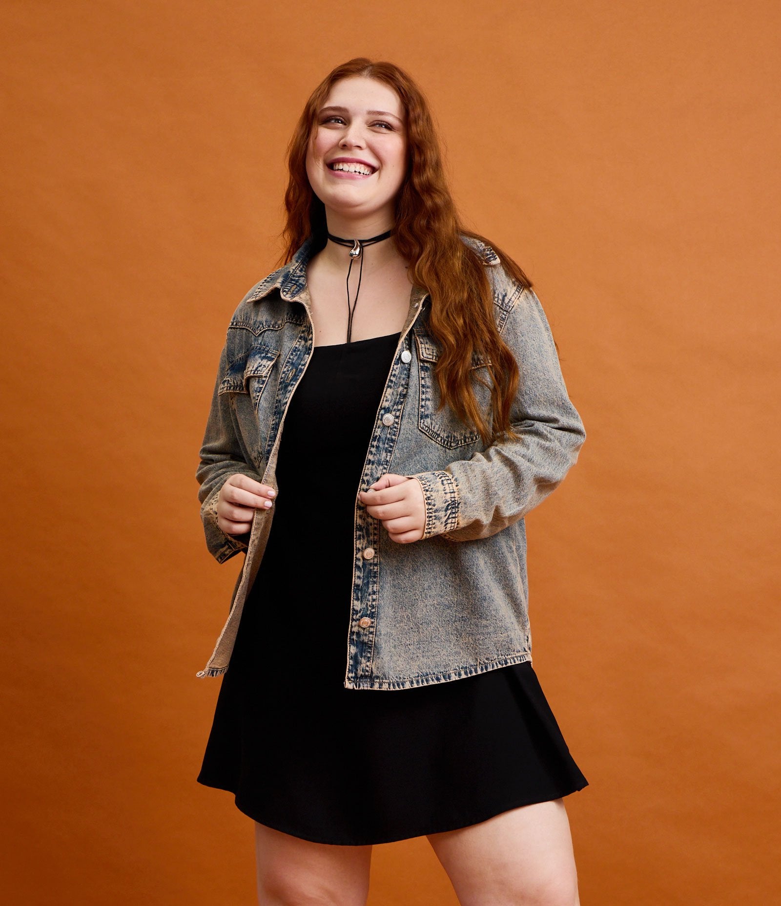Sovracamicia in denim lavato sporco in blu - Curve e taglie forti
