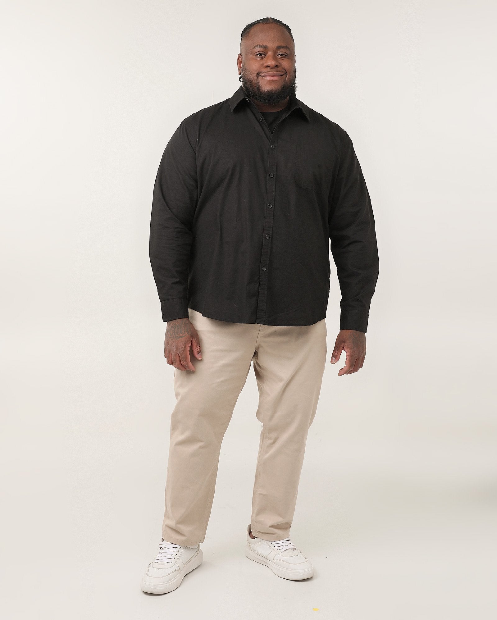 Camicia da uomo Plus Size a manica lunga nera con taschino | Original Plus by Riachuelo
