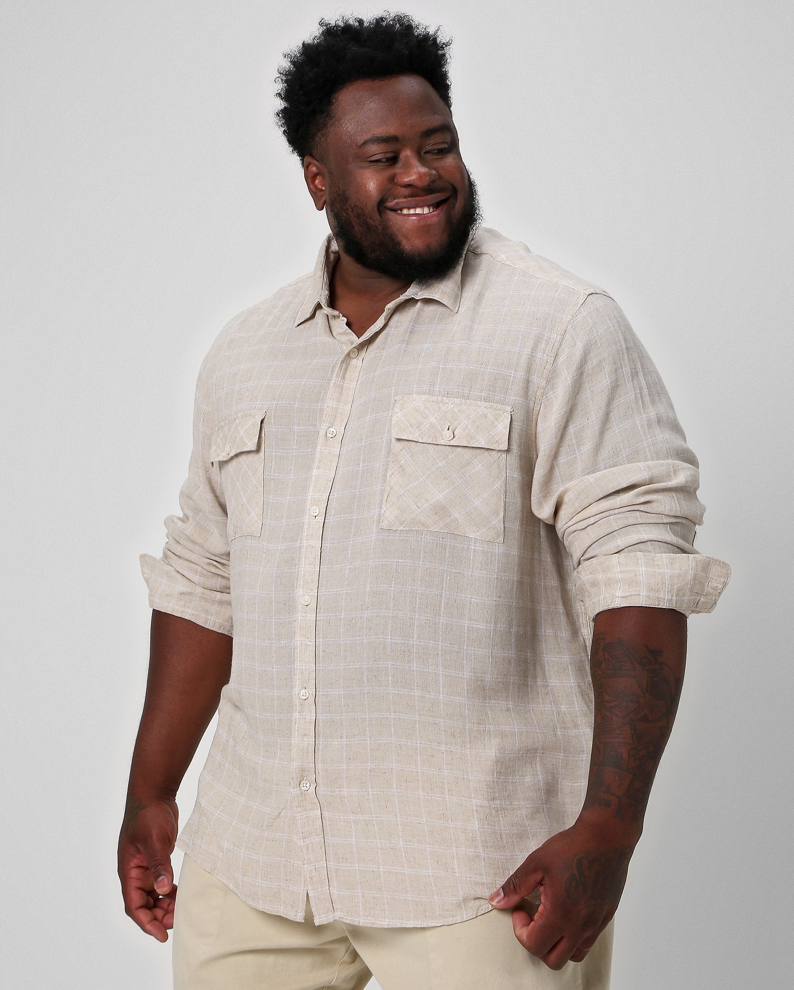 Camicia a scacchi beige Plus Size da uomo Allman By Riachuelo