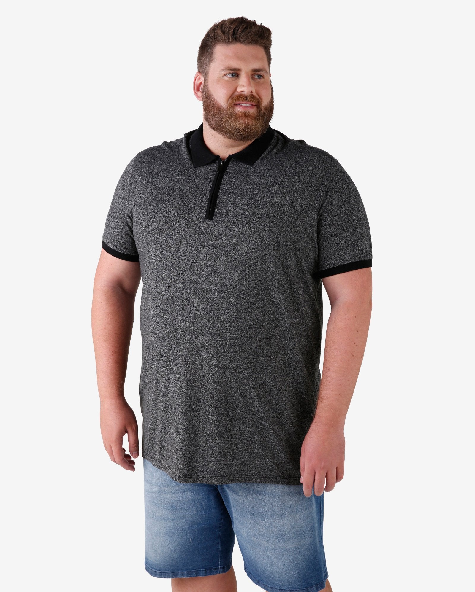 Polo Allman nera taglia forte con cerniera - Finitura erborinata