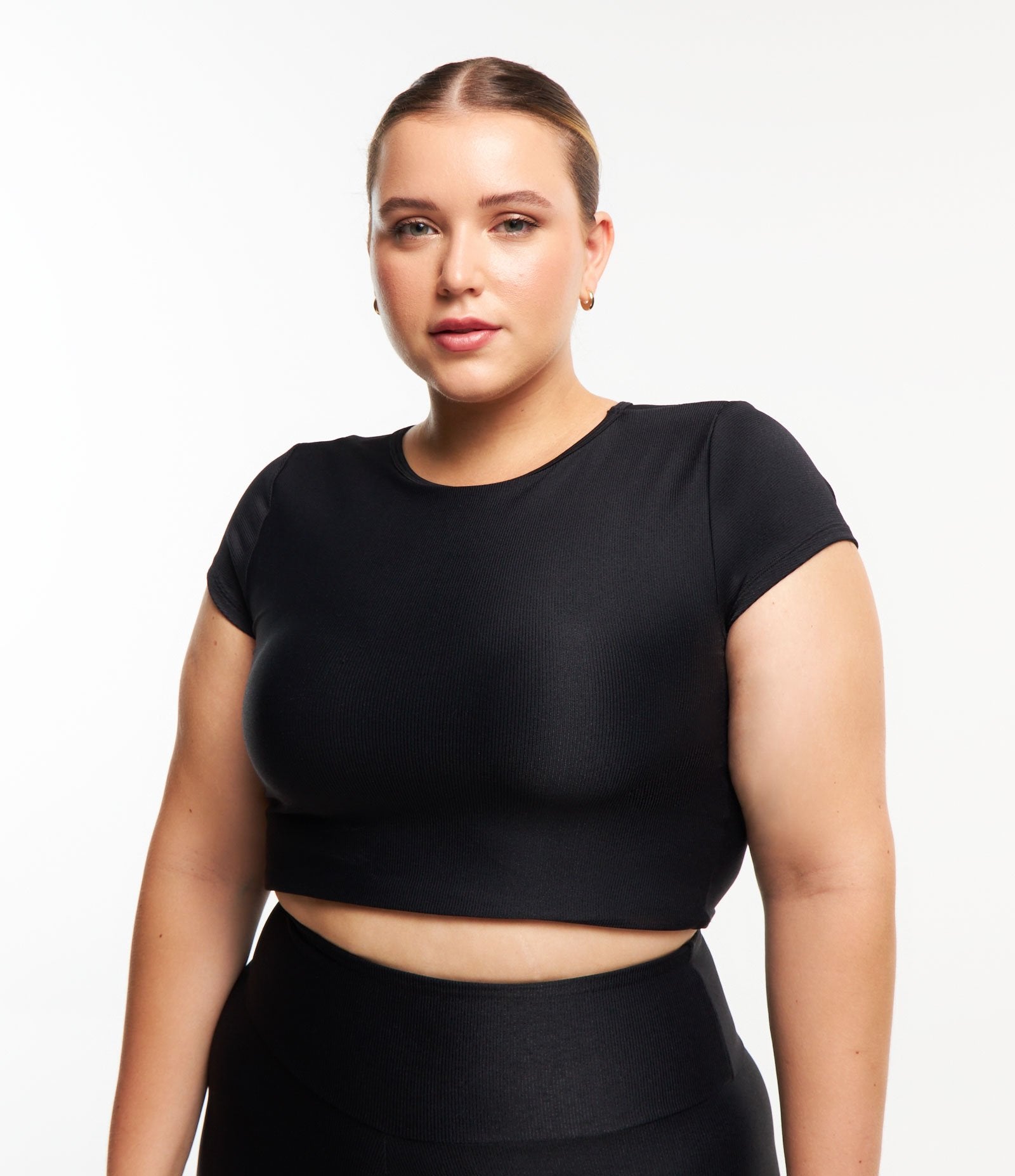 La T-Shirt sportiva cropped in poliammide leggera a coste per Curve & Plus Size in nero di Ashua Curve è realizzata per celebrare le tue curve con stile e sicurezza. Ideale per ogni occasione, questo capo combina perfettamente comfort ed eleganza in un design lusinghiero.