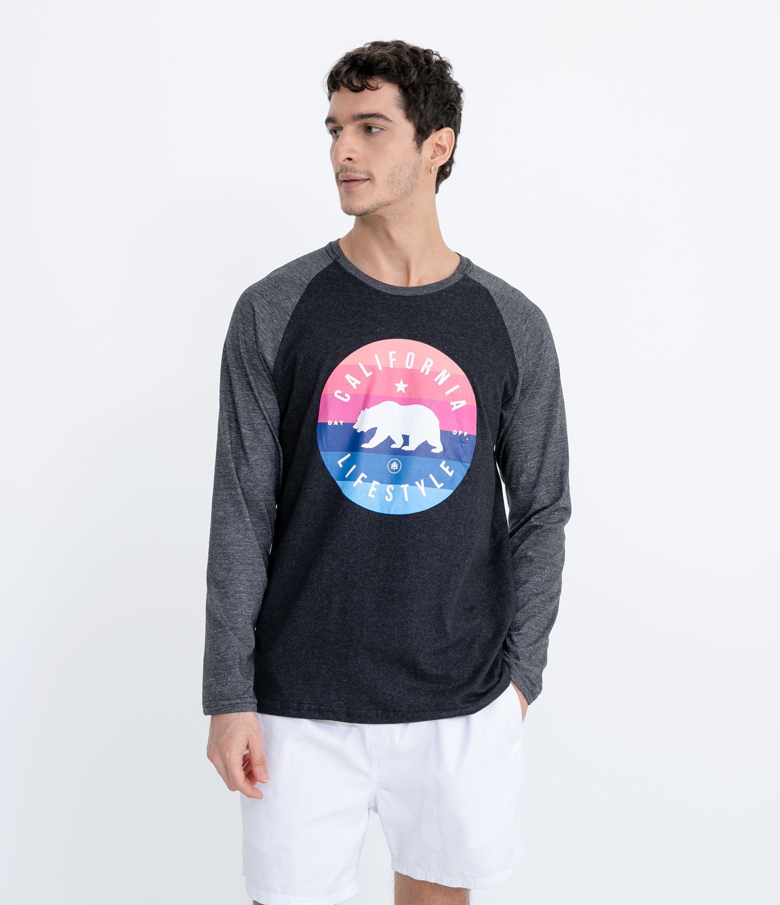 Maglietta Raglan nera a maniche lunghe con stampa dell'orso della California
