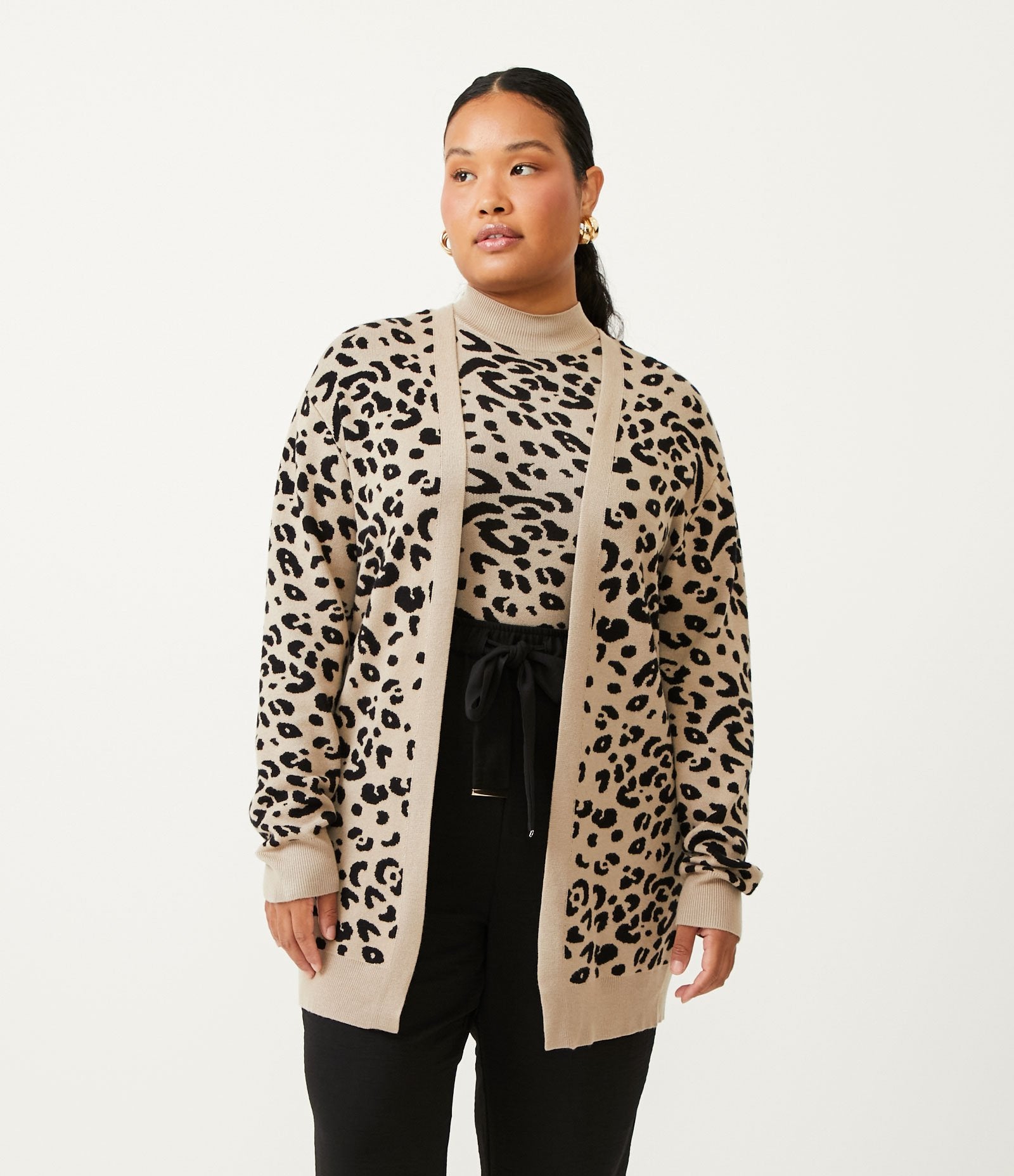 Il cardigan in maglia Onca Curve & Plus Size di Ashua Curve con stampa animalier beige è realizzato per celebrare le tue curve con stile e sicurezza. Ideale per ogni occasione, questo capo combina perfettamente comfort ed eleganza in un design lusinghiero.