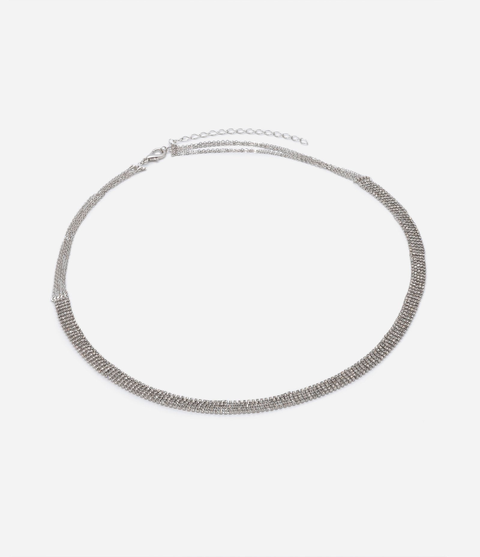 Cintura a catena argentata con strass applicati, taglie forti e taglie forti
