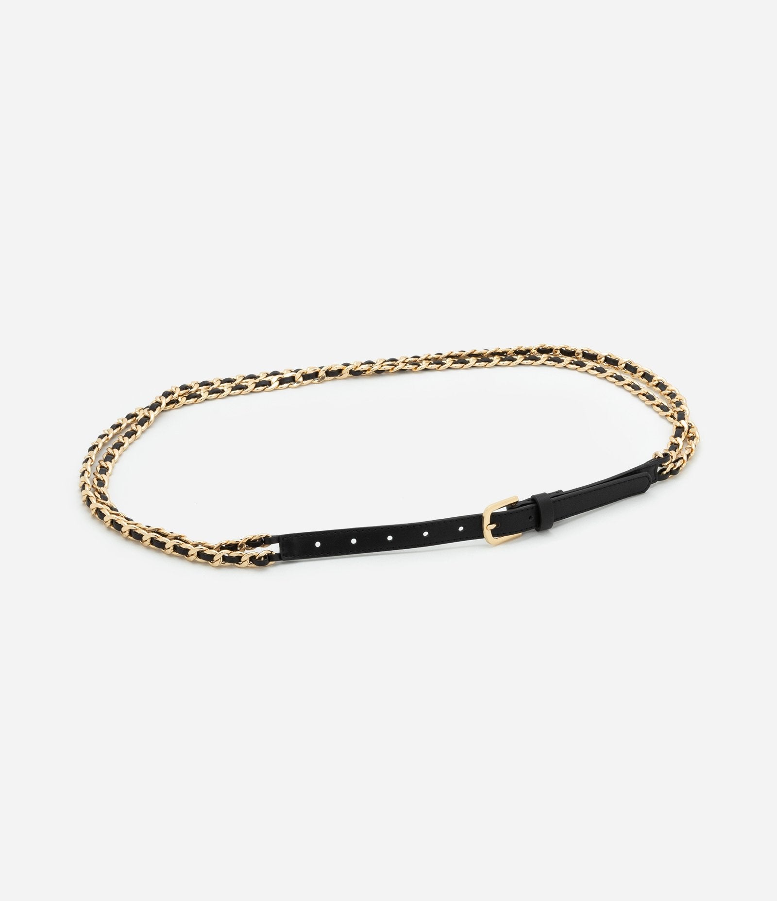 Cintura nera stretta con dettaglio a catena - Curve e taglie forti