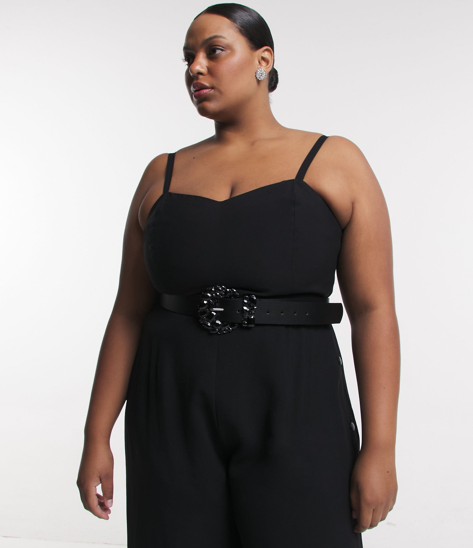La cintura media in materiale sintetico con fibbia in pietra preziosa - Curve & Plus Size in nero di Ashua Curve è realizzata per abbracciare e valorizzare le tue curve con stile e sicurezza. Ideale per ogni occasione, questo capo combina perfettamente comfort ed eleganza in un design lusinghiero.