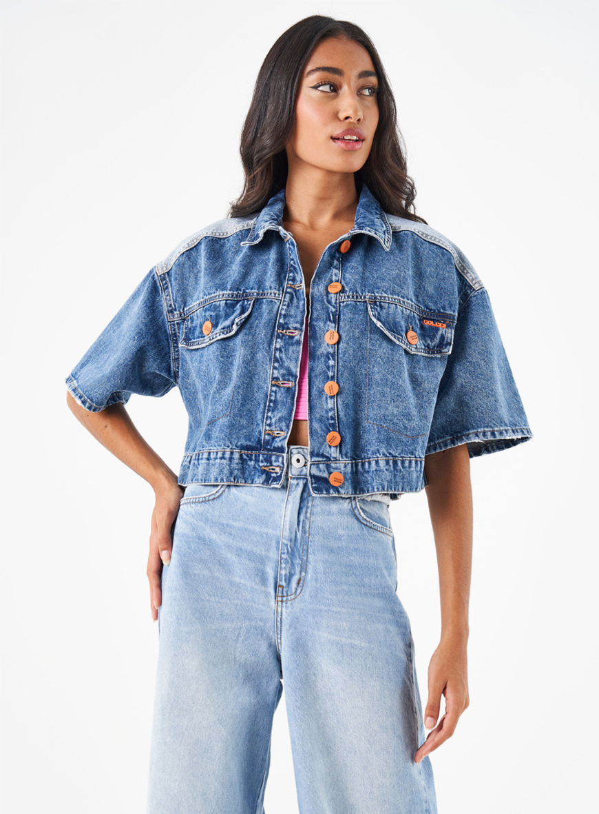 Giubbotto di jeans bicolore di Clc. Realizzato con materiali di alta qualità, questo capo moderno è perfetto per essere indossato tutti i giorni.