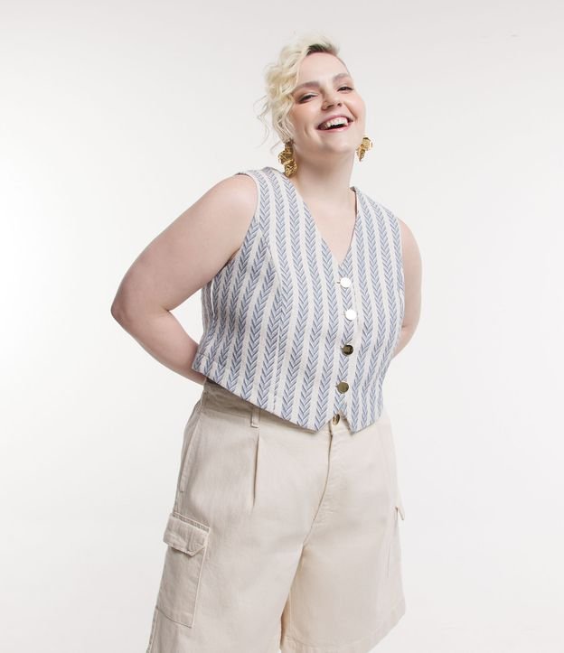 Gilet in tweed con bottoni frontali e stampa etnica, taglie forti e taglie forti, blu/bianco