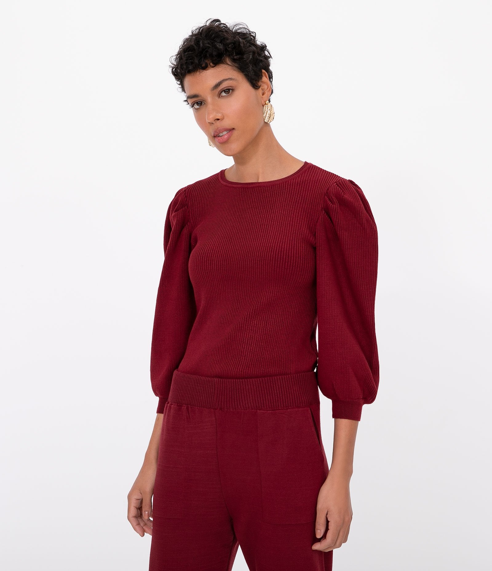 Camicetta rossa con maniche a 3/4 in maglia a sbuffo senza stampa