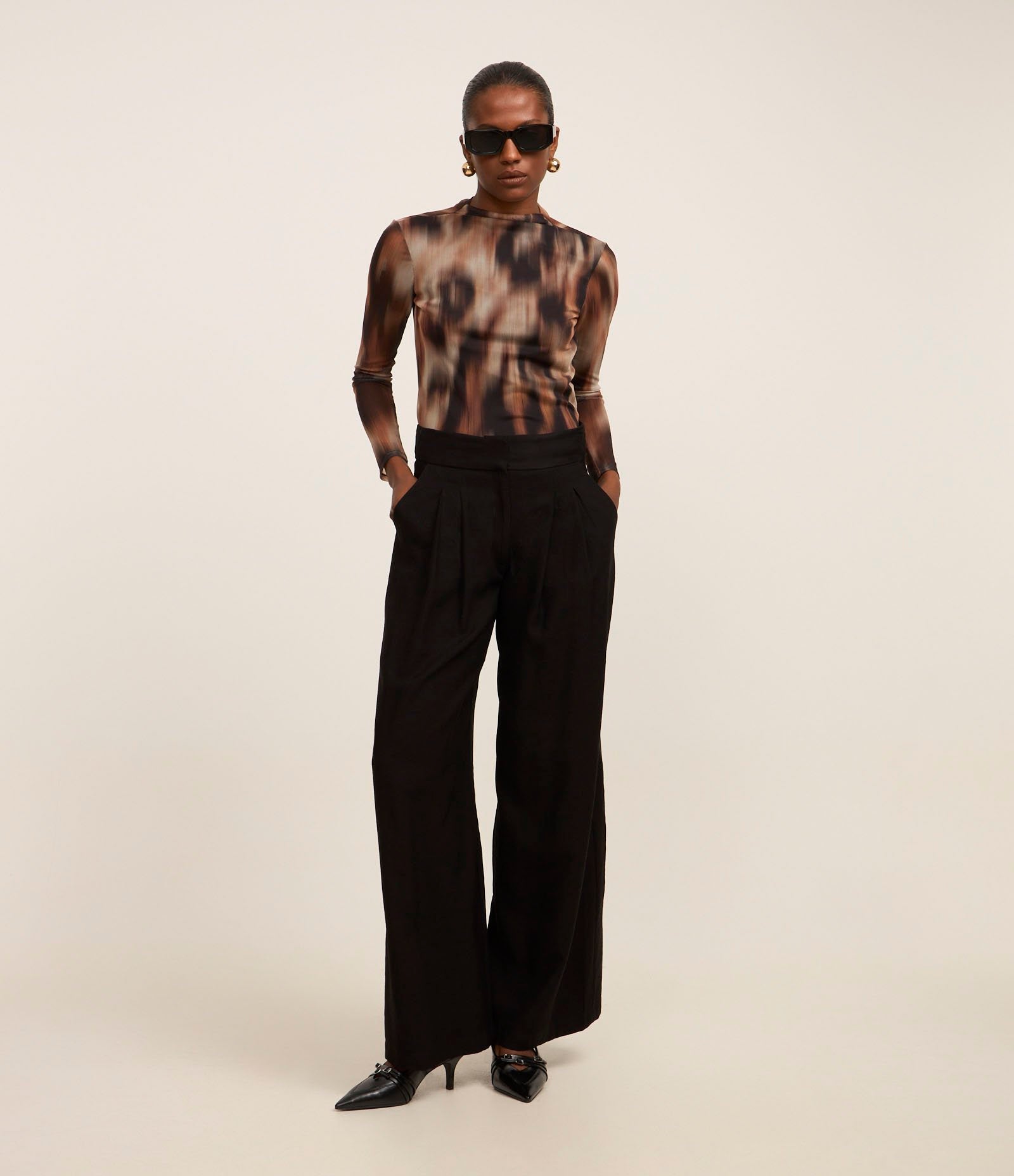Pantaloni sartoriali neri a vita alta e a gamba larga con pinces