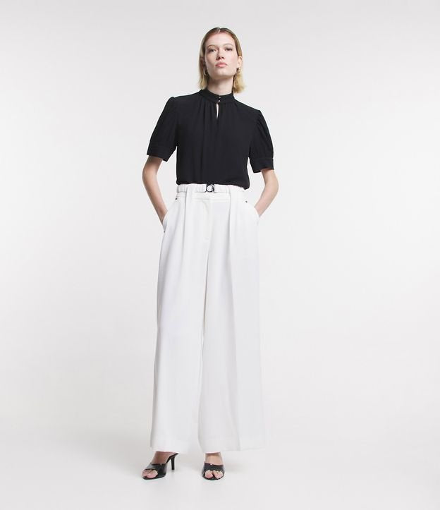 Pantaloni sartoriali a gamba larga con cintura elastica con fibbie in bianco sporco