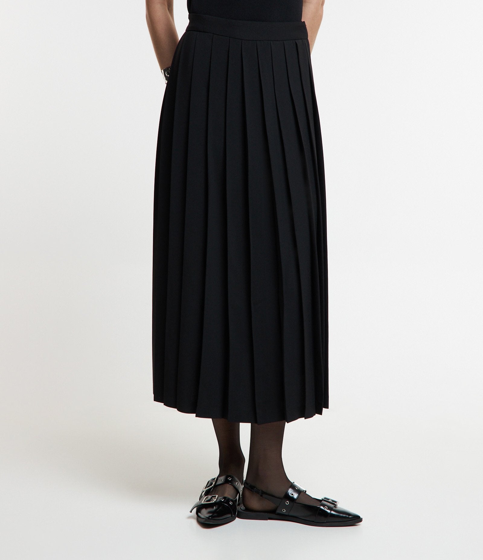 Gonna sartoriale midi con struttura a pieghe sovrapposte in nero di Cortelle - Prova il comfort, la qualità e lo stile senza pari in ogni capo.