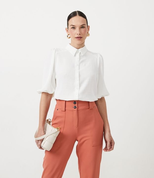Blusa in crêpe bianca con maniche a sbuffo di Cortelle - Prova la miscela perfetta di comfort, qualità e stile in ogni capo.
