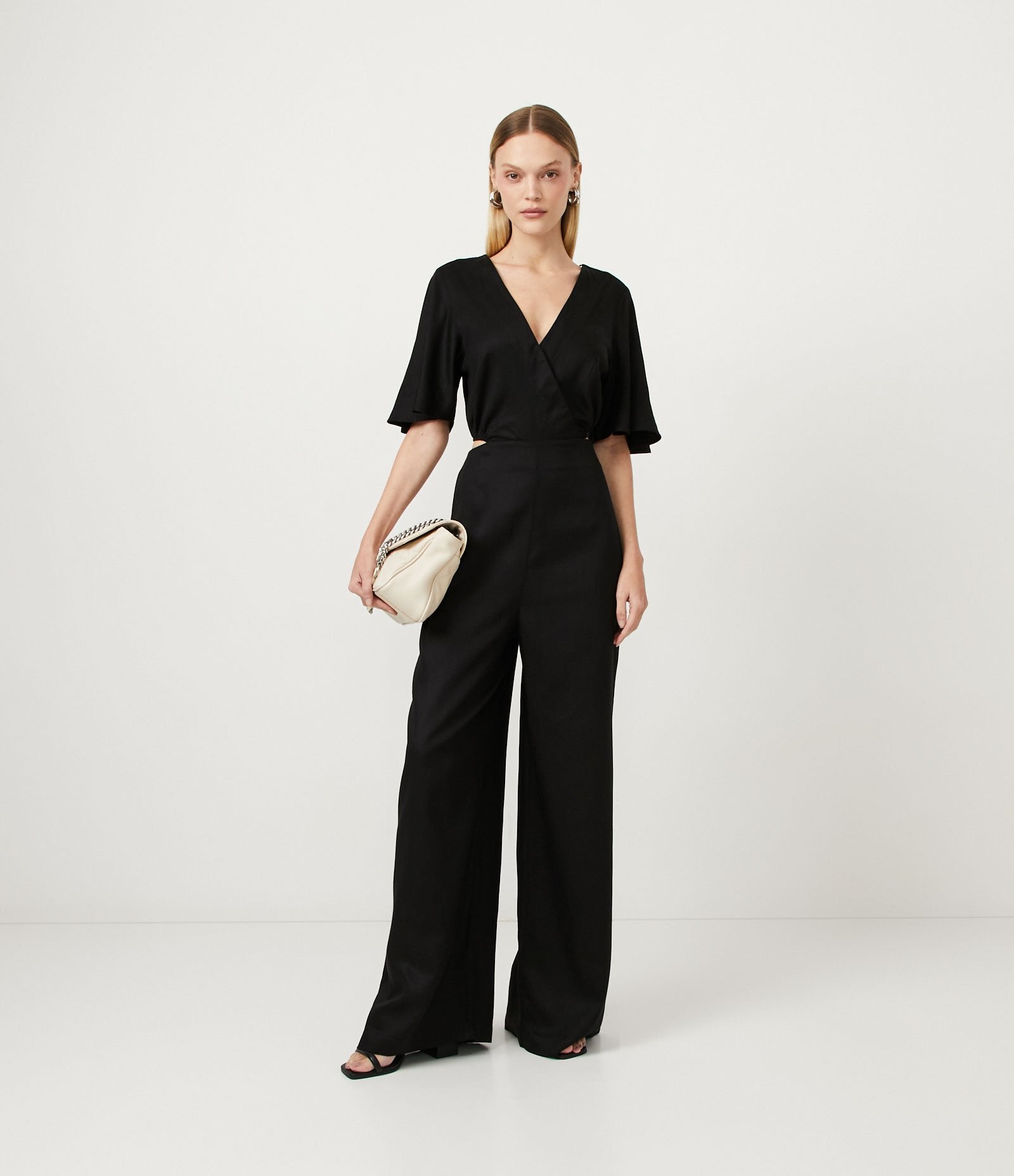 Tuta lunga in misto lino e viscosa con maniche ampie - Nero