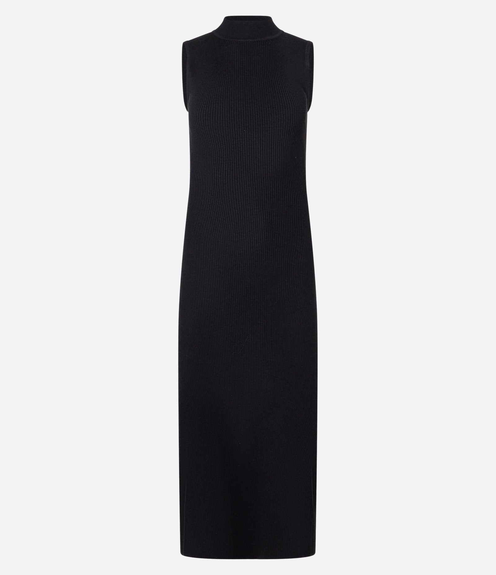 Midi dress lungo in maglia a coste nera con collo alto di Cortelle - Prova la miscela perfetta di comfort, qualità e stile in ogni capo.