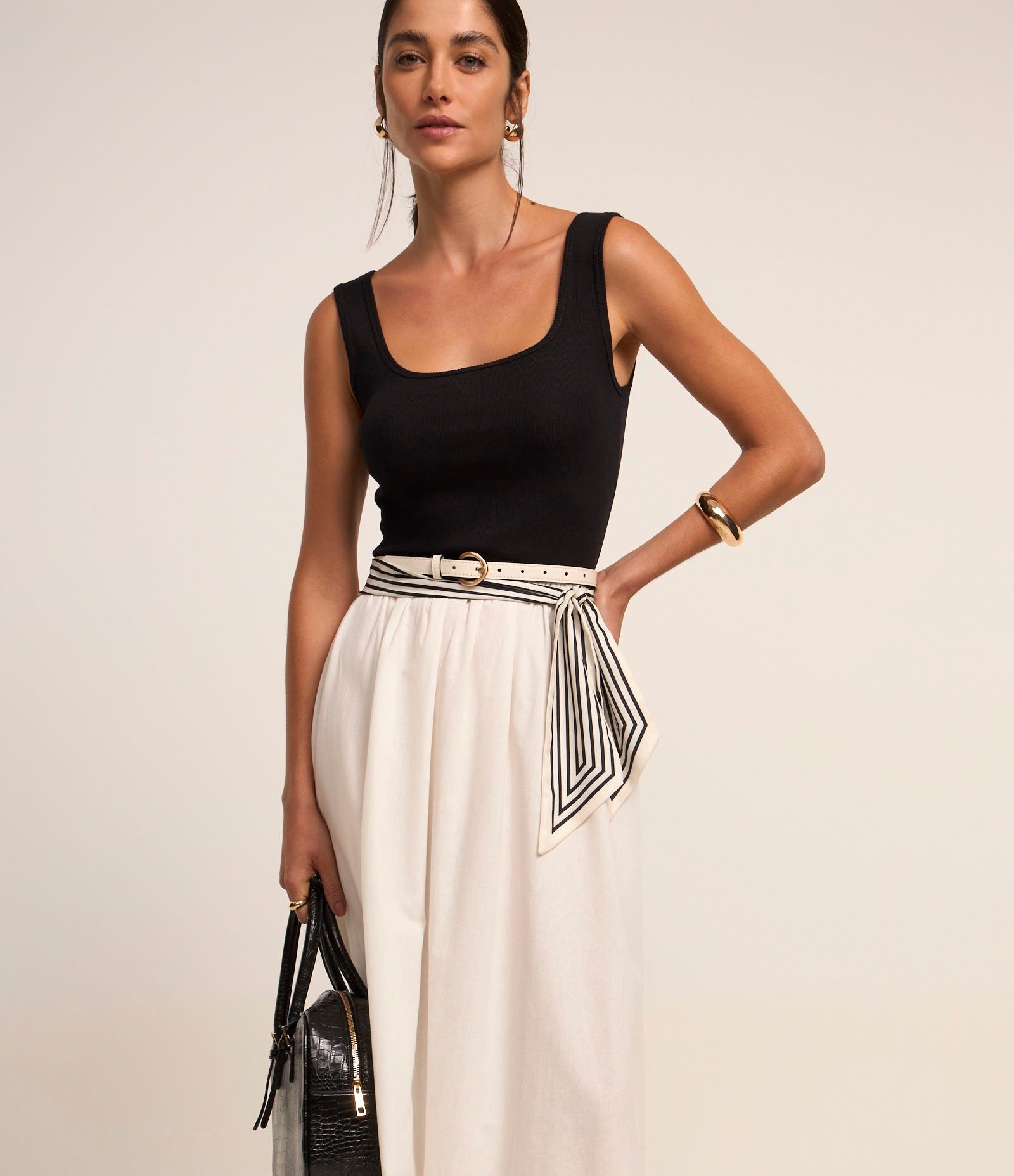 Abito tricolore senza maniche con blocchi di colore nero/bianco