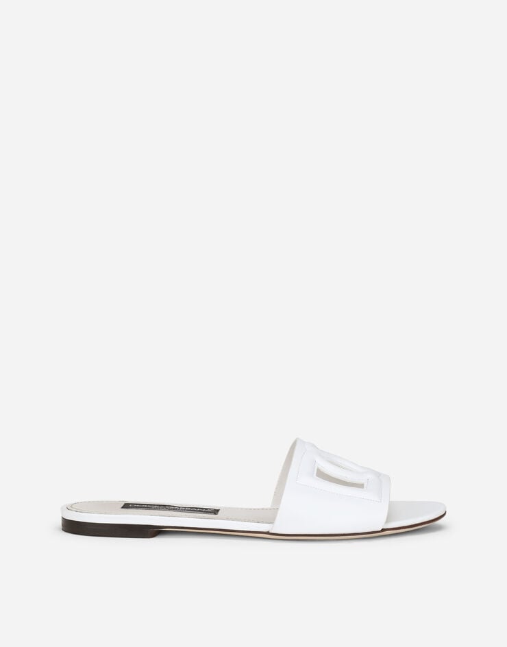 Le Slides in pelle di vitello con logo DG di Dolce & Gabbana sono realizzate con materiali pregiati e incarnano l'eleganza senza tempo del design italiano.