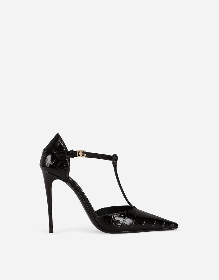 Le T-Bar Pumps in pelle di vitello con stampa coccodrillo di Dolce & Gabbana sono realizzate con materiali pregiati e incarnano l'eleganza italiana senza tempo.
