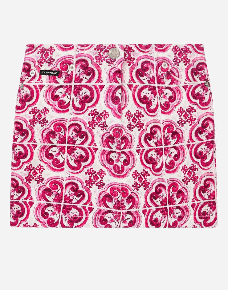 Minigonna di jeans con stampa maiolica e 5 tasche