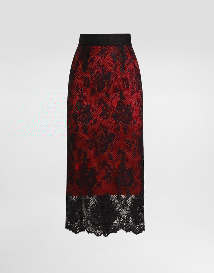 La gonna a matita in pizzo di Dolce & Gabbana, con fodera a contrasto, è la scelta ideale per i look essenziali e l'eleganza di tutti i giorni.