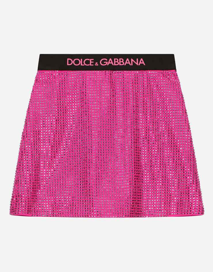 Minigonna con strass e cintura elastica con marchio in vita