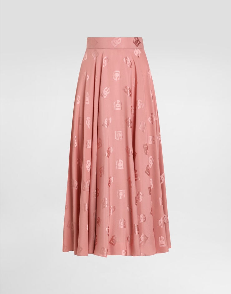 Gonna a cerchio in seta jacquard lunga fino al polpaccio con logo DG