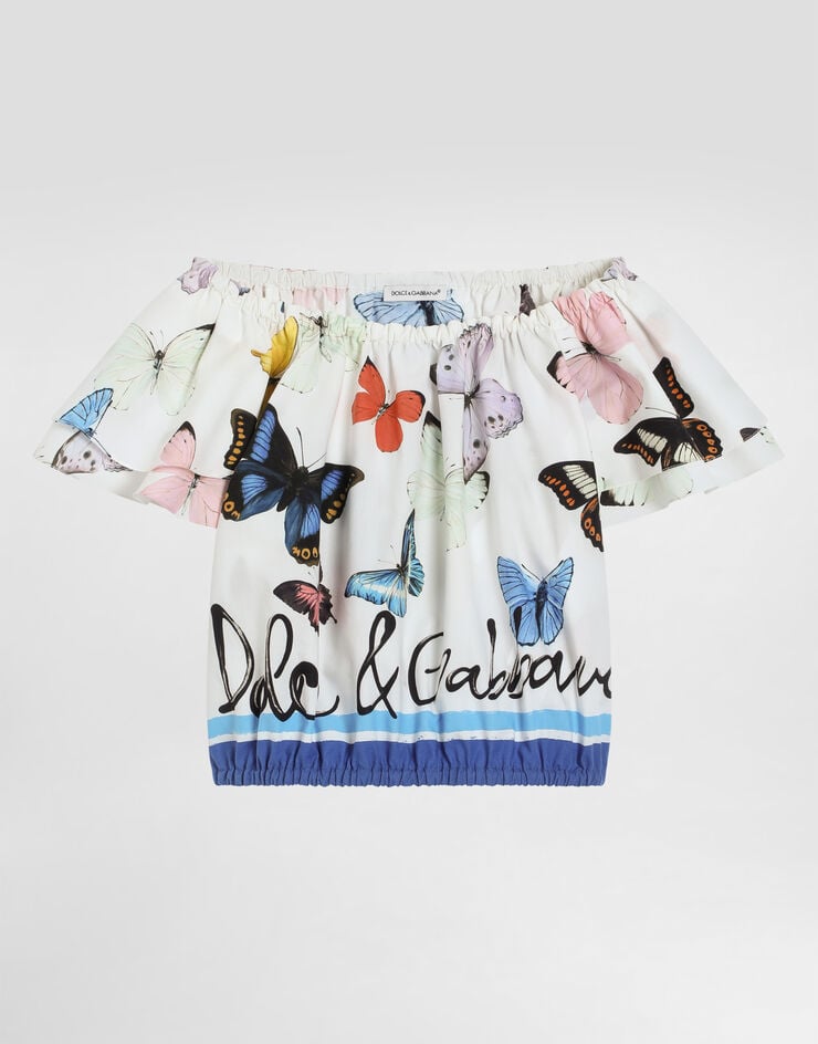 Il top in popeline di cotone Dolce & Gabbana, ornato da una delicata stampa di farfalle, è la scelta perfetta per uno stile senza sforzo e un'eleganza quotidiana.