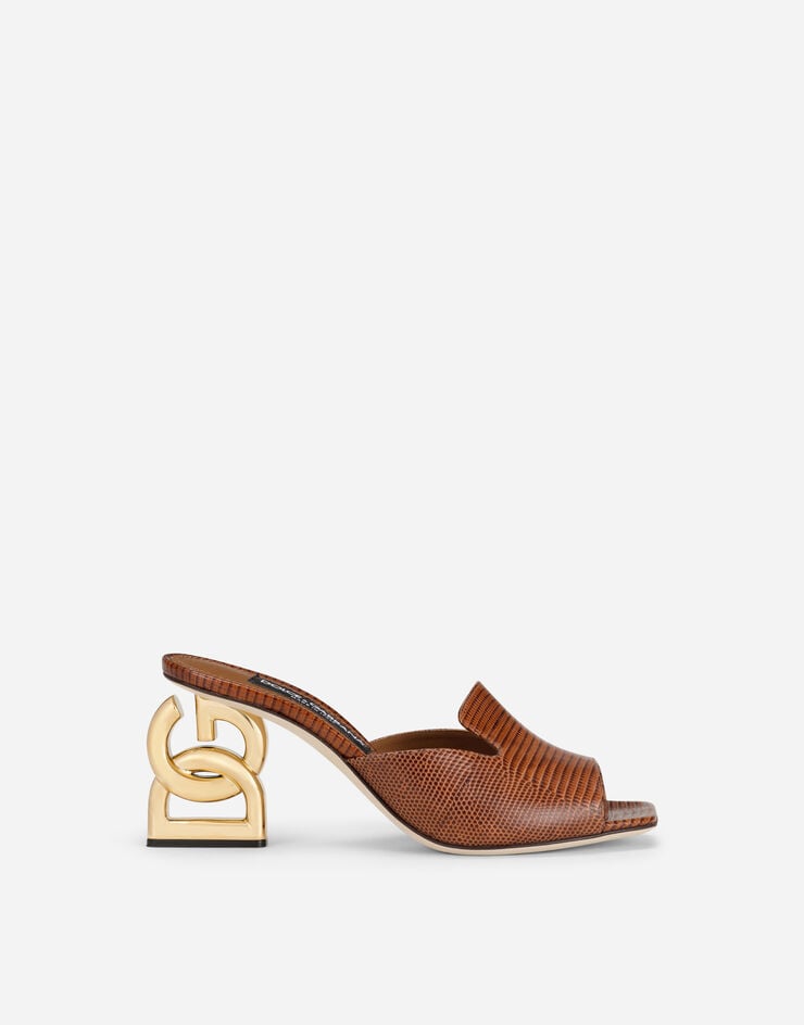 Le mules in pelle di vitello con stampa iguana e tacco da 3,5 pollici di Dolce & Gabbana sono realizzate con materiali pregiati e incarnano l'eleganza italiana senza tempo.