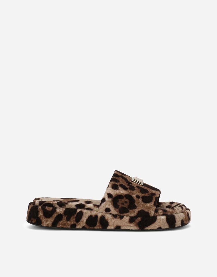 Le scarpe da ginnastica in spugna con stampa leopardata di Dolce &; Gabbana sono realizzate con materiali lussuosi e mostrano l'intramontabile stile italiano del marchio. Caratterizzate da un'etichetta distintiva e da due squisite finiture di placcatura, queste ciabatte combinano senza sforzo comfort e raffinatezza per un'aggiunta chic al tuo guardaroba.