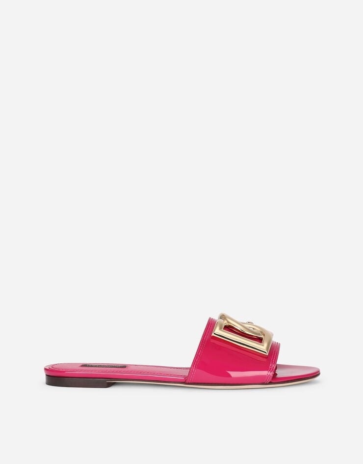 Le Slides in pelle verniciata con logo DG di Dolce & Gabbana sono realizzate con materiali pregiati e incarnano l'eleganza italiana senza tempo.