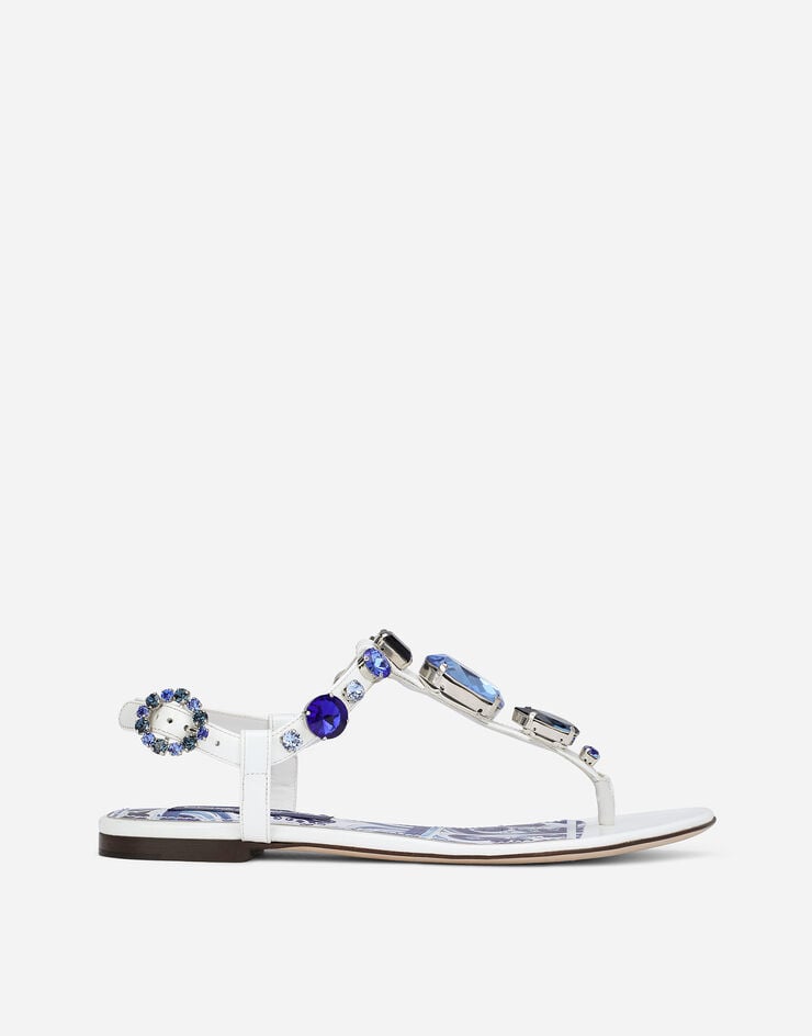 I sandali infradito in pelle verniciata con ricamo di Dolce & Gabbana sono realizzati con materiali pregiati e incarnano l'eleganza italiana senza tempo.