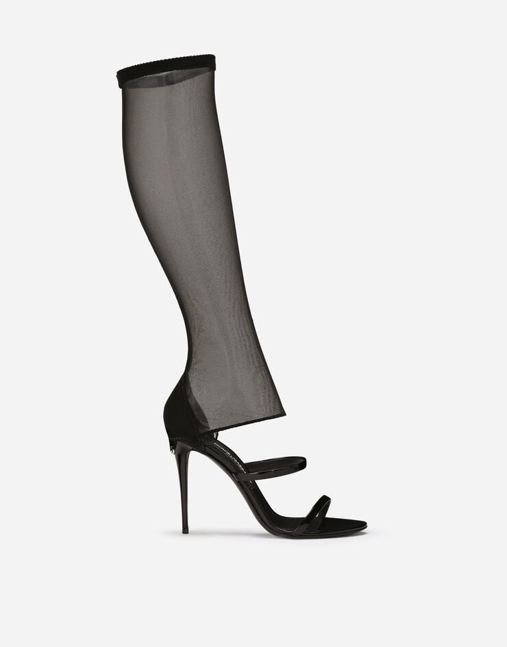 Sandali in pelle di vitello lucida e tulle elasticizzato