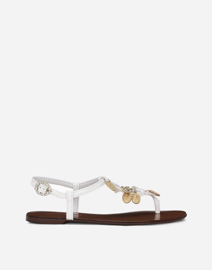 I sandali infradito in rafia con medaglioni votivi ricamati di Dolce & Gabbana sono realizzati con materiali pregiati e incarnano l'eleganza senza tempo dello stile italiano.