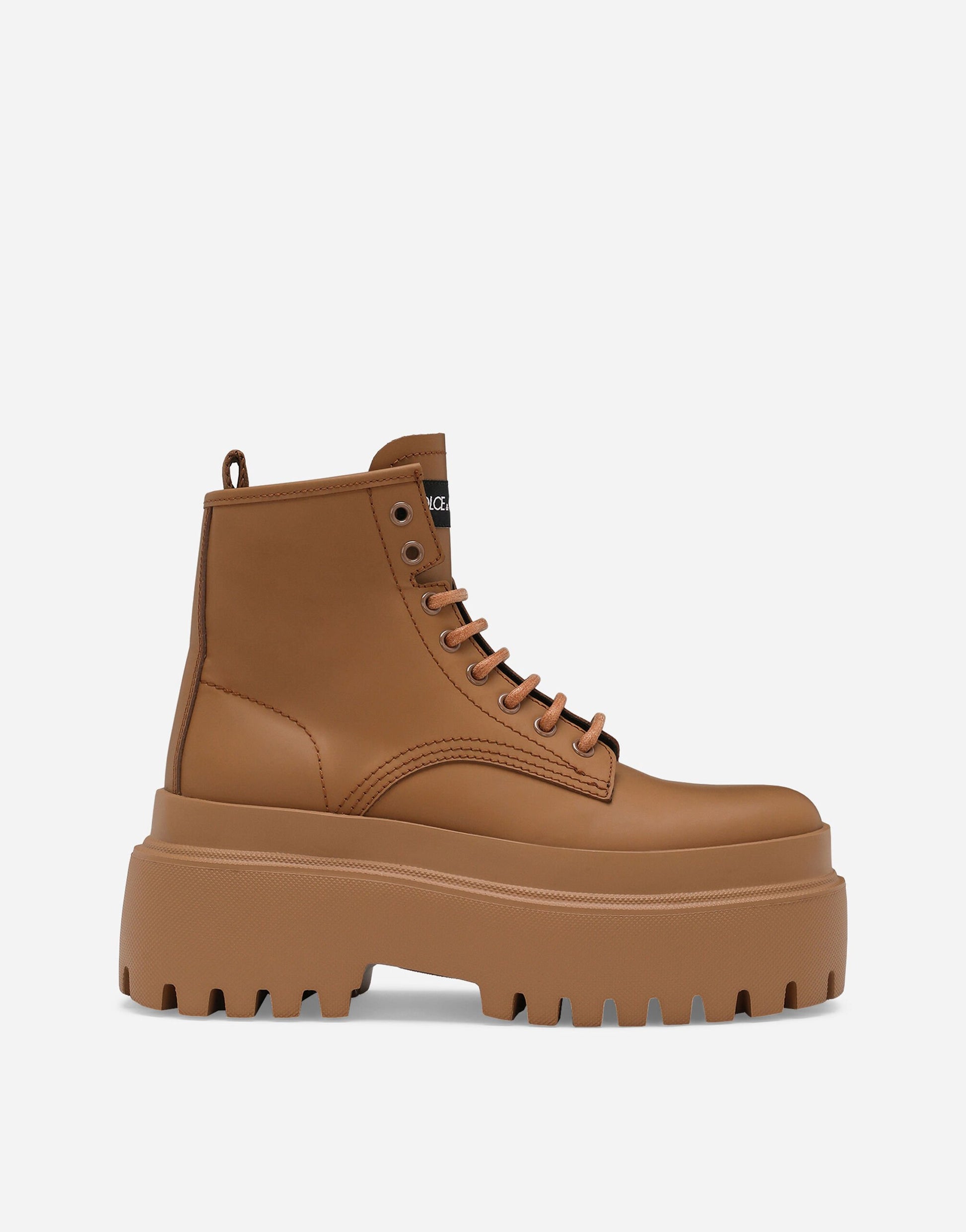 Gli stivaletti in pelle di vitello gommata di Dolce & Gabbana sono realizzati con materiali pregiati e incarnano uno stile italiano senza tempo.