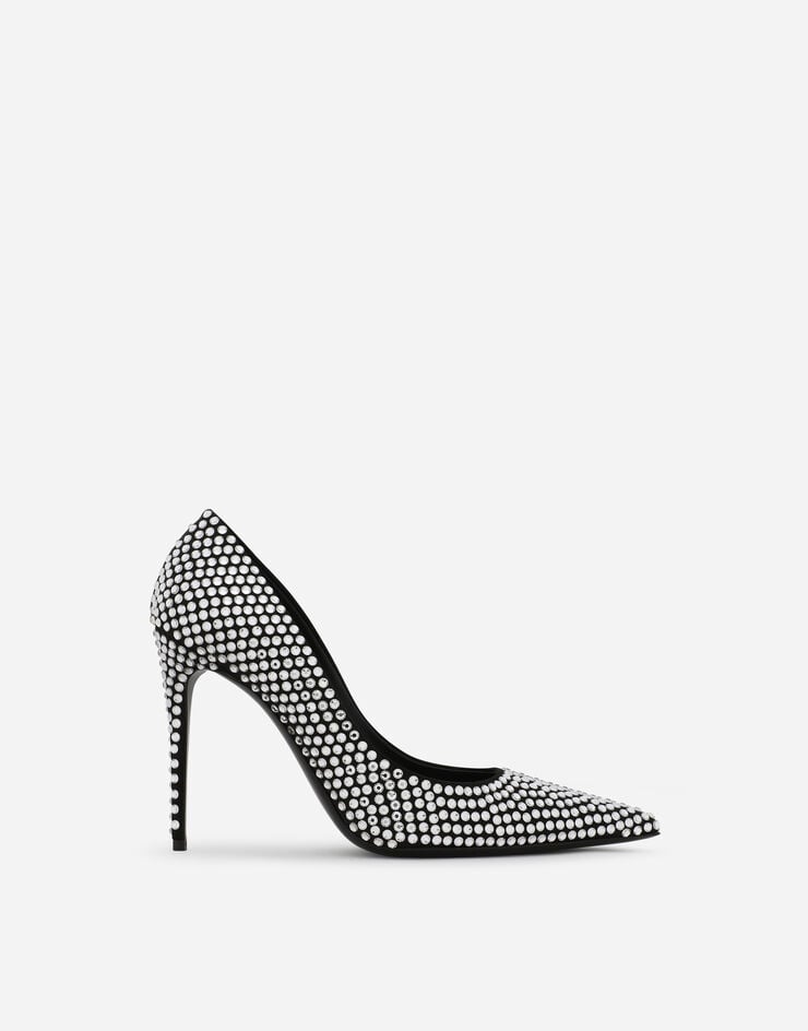 Le décolleté in raso con strass fusibili di Dolce & Gabbana sono realizzate con materiali pregiati e incarnano l'eleganza senza tempo del design italiano.