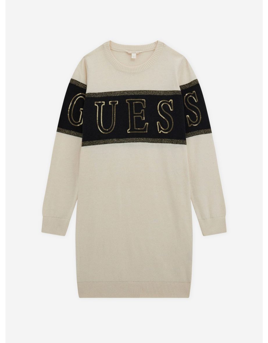 Il vestito da bambina con logo in avorio di Guess è la scelta ideale per uno stile senza sforzo e da indossare tutti i giorni.