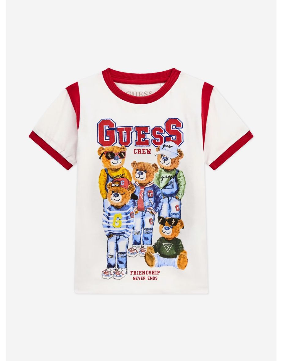 La T-Shirt Boys Bear Print in bianco di Guess è la scelta ideale per uno stile casual senza sforzo e da indossare tutti i giorni.