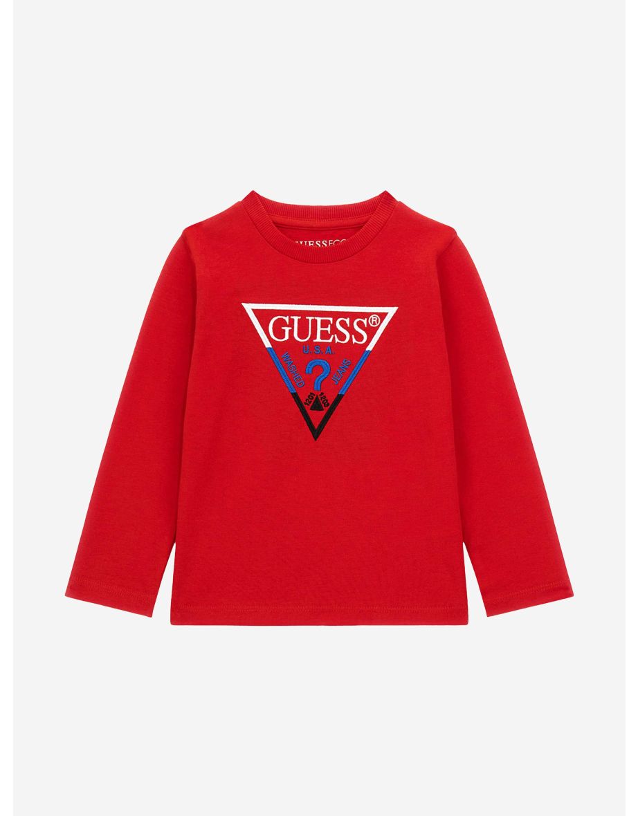 La T-Shirt Logo a manica lunga da ragazzo in rosso di Guess è la scelta ideale per uno stile casual senza sforzo e da indossare tutti i giorni.