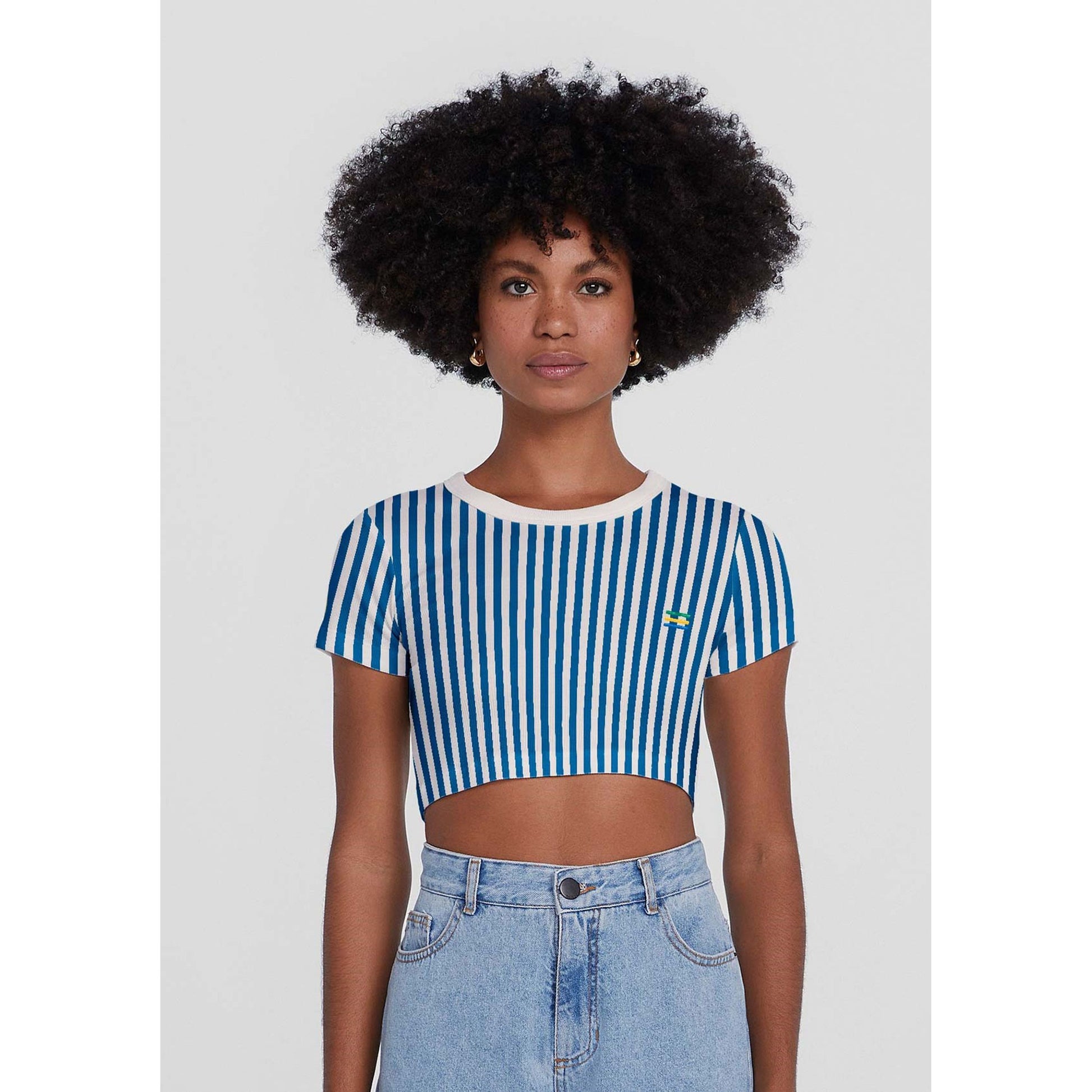 La blusa cropped a righe da donna in blu di Hering è l'aggiunta perfetta al tuo guardaroba per creare look essenziali e quotidiani.