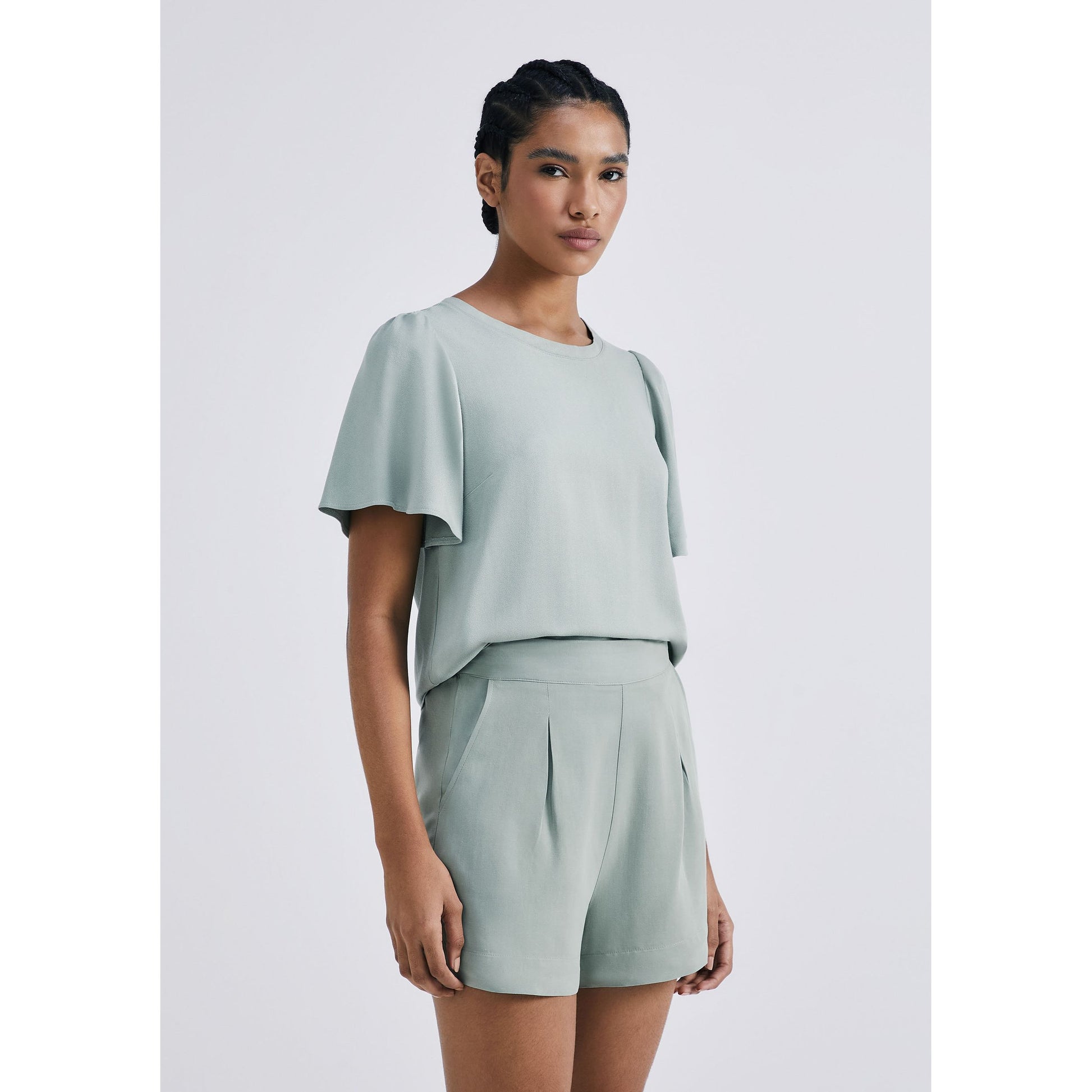 Gli shorts a vita alta Viscolinho da donna in verde di XP Hering sono l'aggiunta perfetta al tuo guardaroba per i look essenziali e l'abbigliamento quotidiano.