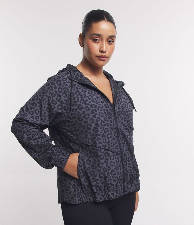Giacca a vento con stampa animalier grigio scuro e cappuccio - Curve e taglie forti